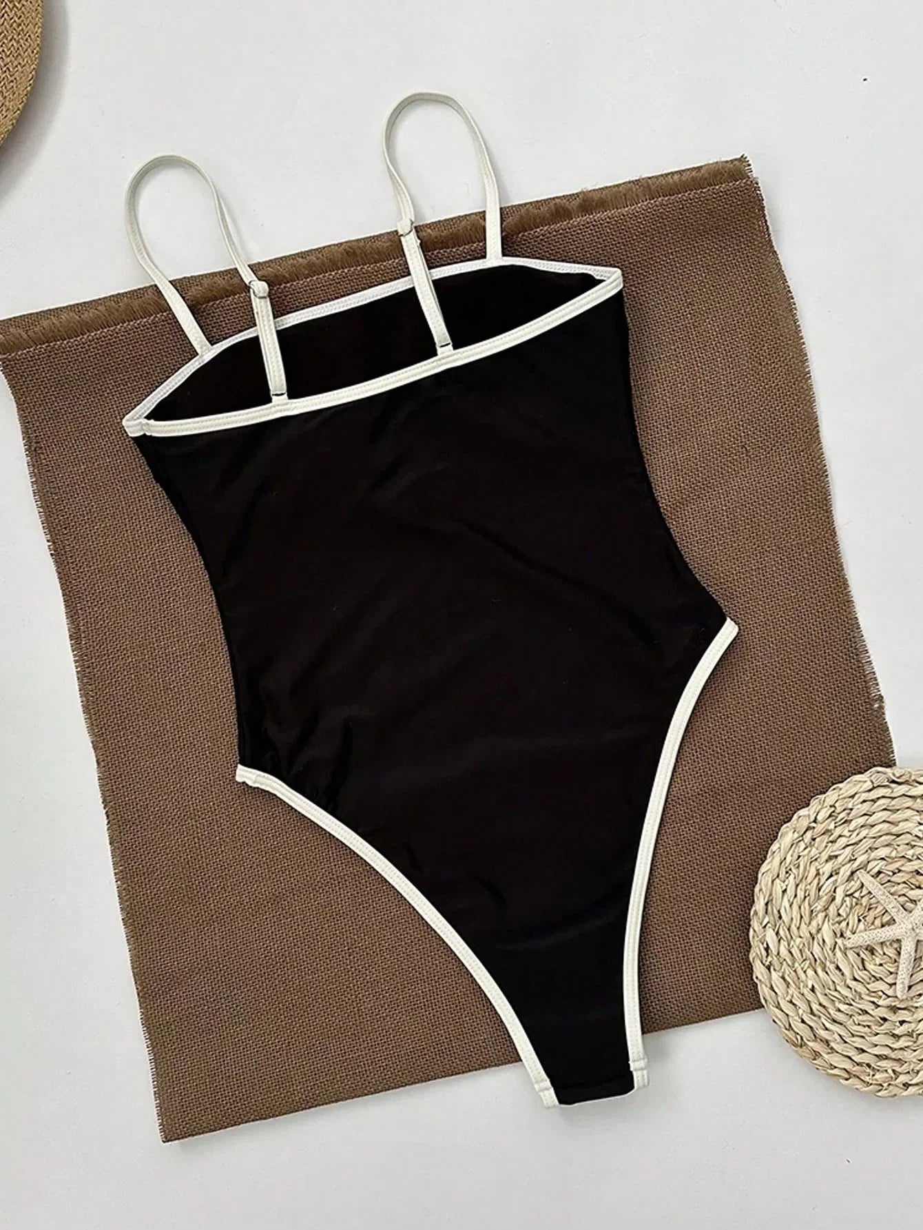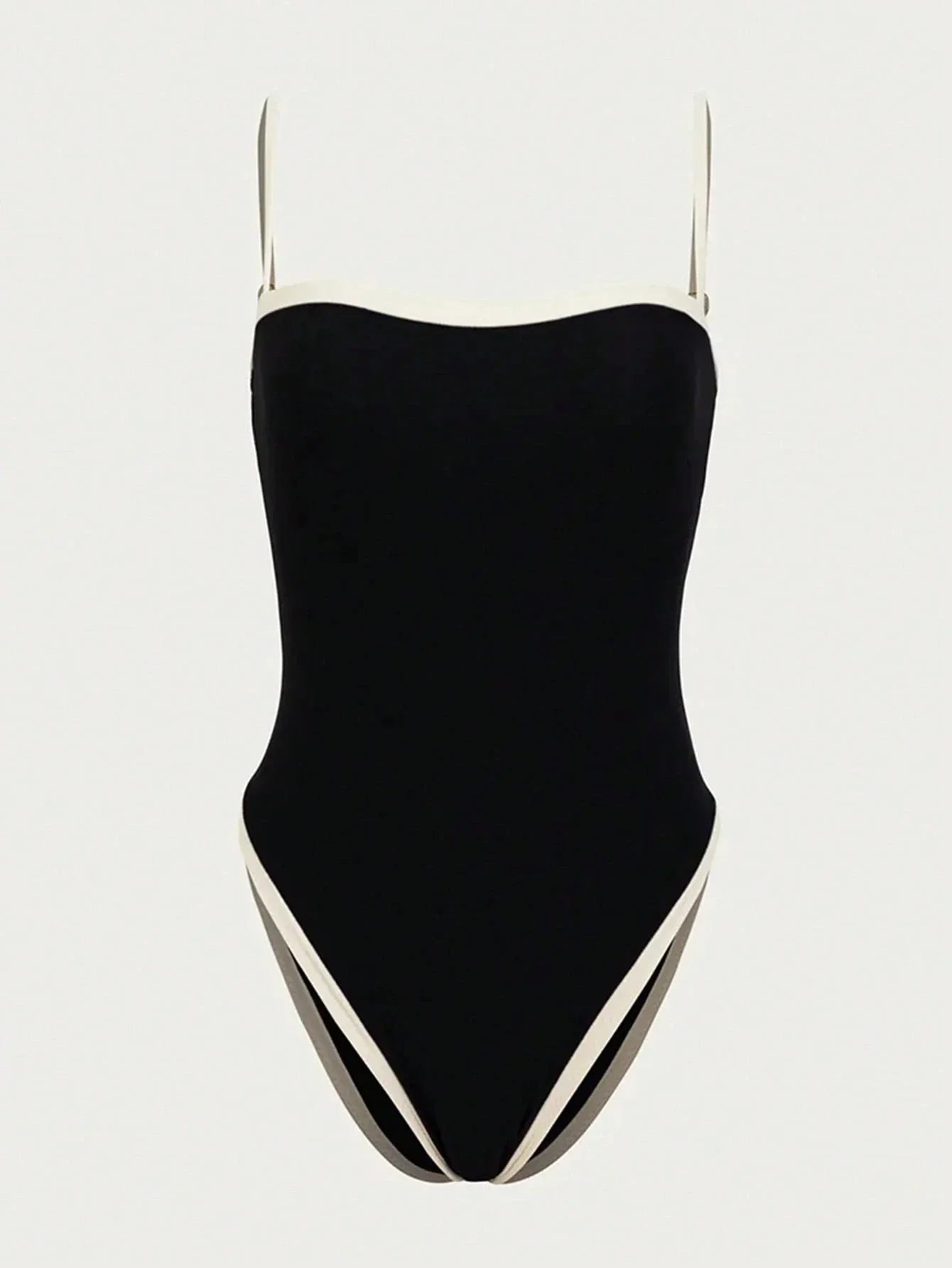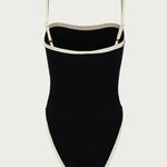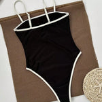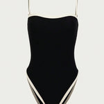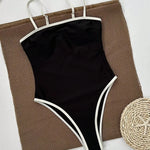 Elegante Dames Badpak Zwart – Eénstuk met hoge beenuitsnijding & stijlvolle contrastdetails