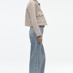 • Design: Cropped jas met klassieke kraag en klepzakken