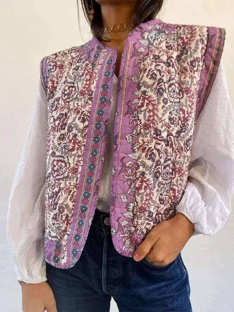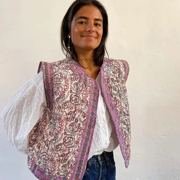 Gewatteerd Gilet met Bloemenprint | Boho Stijl | Lichtgewicht en Comfortabel