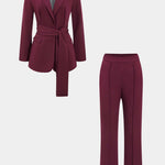 De Camilla Tweedelige Set brengt elegantie en zelfvertrouwen in elke look. De getailleerde blazer met strikceintuur accentueert de taille, terwijl de recht gesneden broek zorgt voor een stijlvolle silhouet. De edele kleurstelling en het hoogwaardige materiaal maken deze set perfect voor zakelijke bijeenkomsten, dinerafspraken of chique vrijetijdskleding.