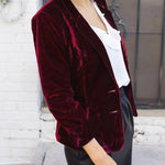 PRODUCT BESCHRIJVINGOntdek de Maeve, een symbool van tijdloze elegantie en retro charme. Deze prachtige fluwelen blazer is een must-have voor je lent- en herfstgarderobe. Met een verfijnde lapel kraag en een knoopsluiting, combineert deze blazer moeiteloos mode met functionaliteit. Het hoogwaardige polyester materiaal voelt luxueus en zacht aan, en zorgt voor een chique silhouet dat elke outfit naar een hoger niveau tilt.