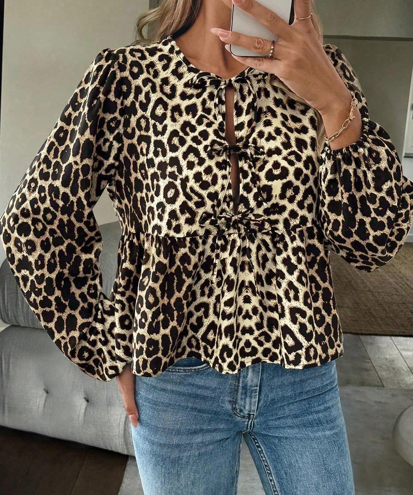Leopardprint Damesblouse met Strikdetail – Vrouwelijk, Opvallend & Trendbewust