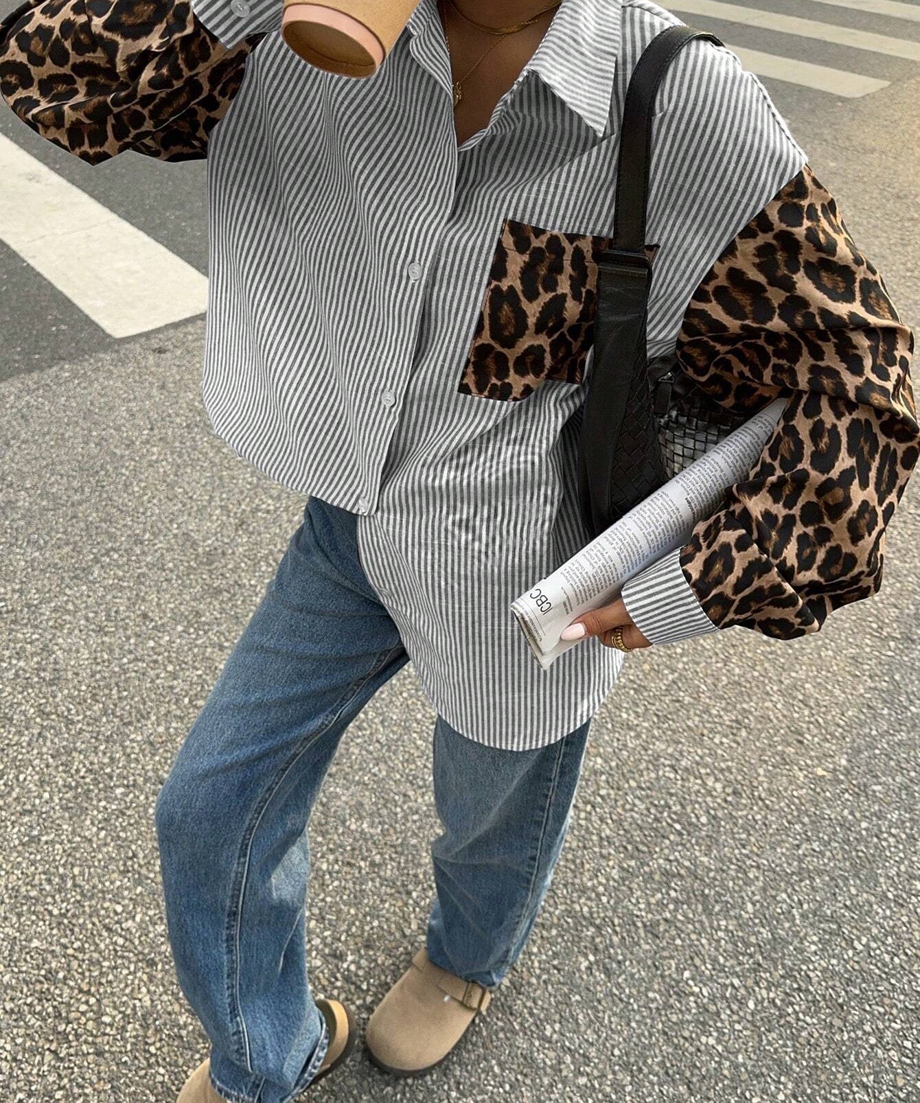 Gestreepte Damesblouse met Leeuwdetails – Opvallend, Casual & Streetstyle-klaar