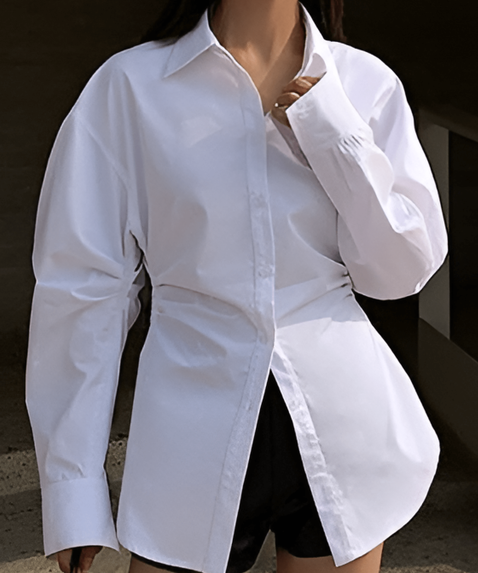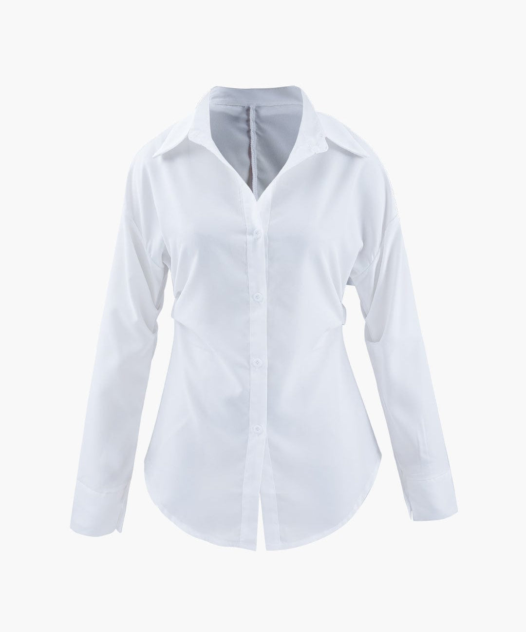 Ilaria | Witte Oversized Blouse met Benadrukte Taille en Klassieke Kraag