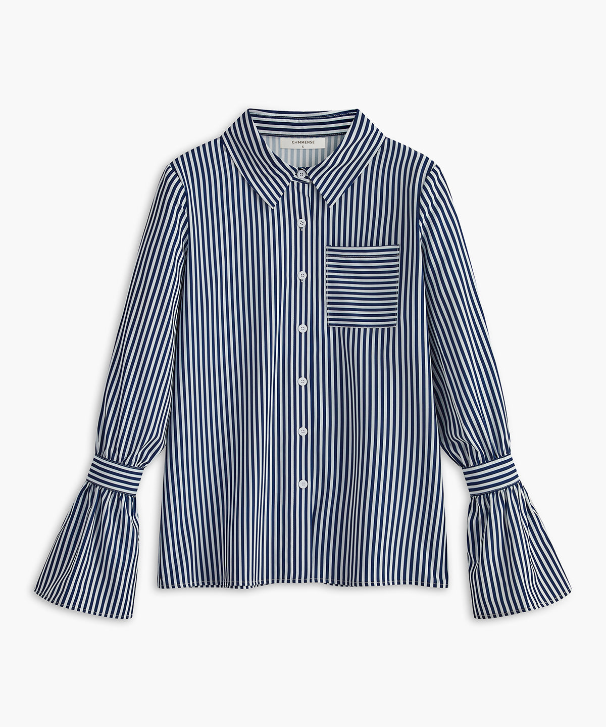 Gestreepte Damesblouse in Marineblauw met Uitlopende Mouwen