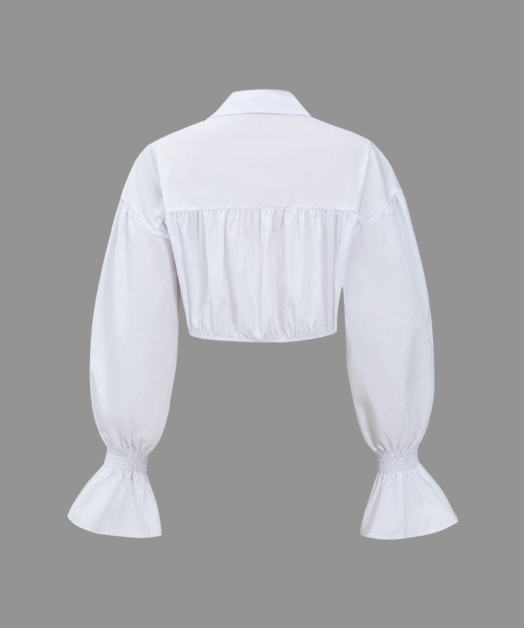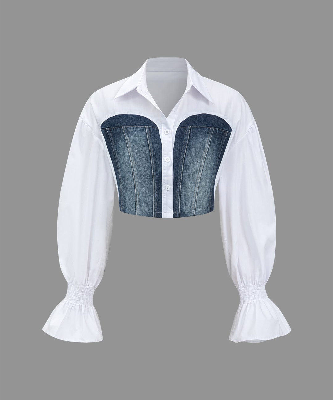 Sunniva | Cropped Blouse met Denim Korsetten en Volumineuze Mouwen