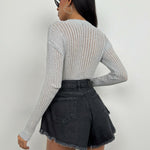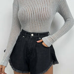 Alora | Grijze, Geribbelde Damesblouse met Transparante Structuur