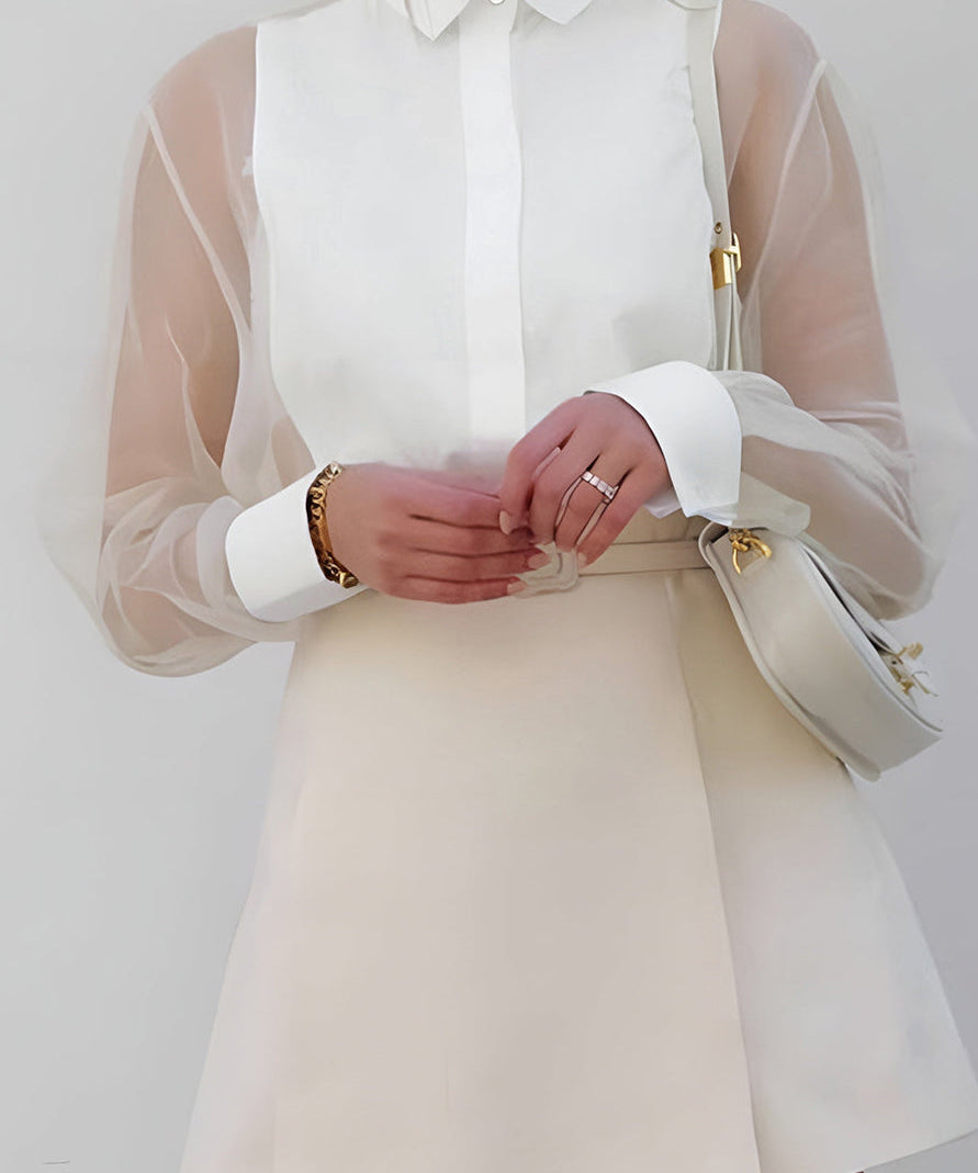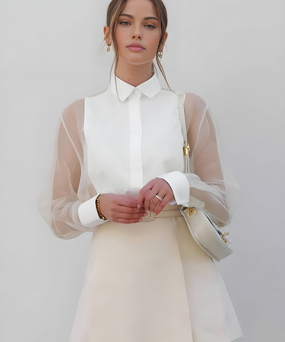 Elegante Damesblouse met Transparante Mouwen – Stijlvol, Vrouwelijk & Tijdloos